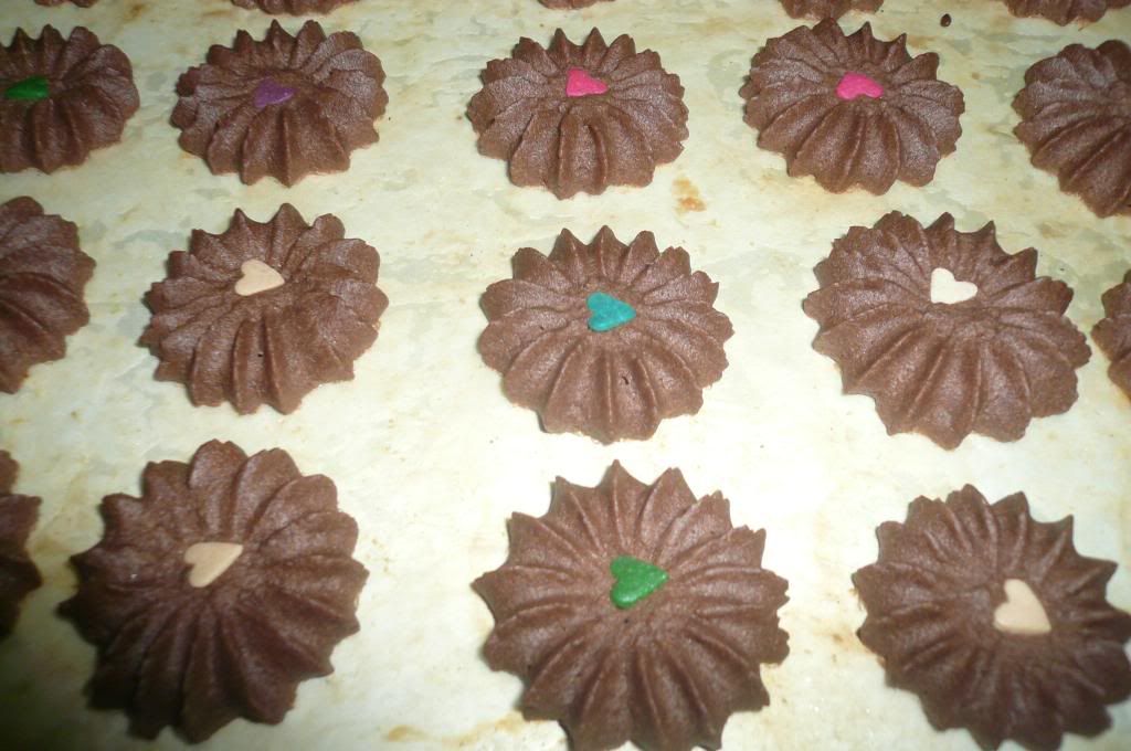 对这个有兴趣 请问是普通的butter cookies加可可粉吗?使用饼模?还是挤花的呢? |