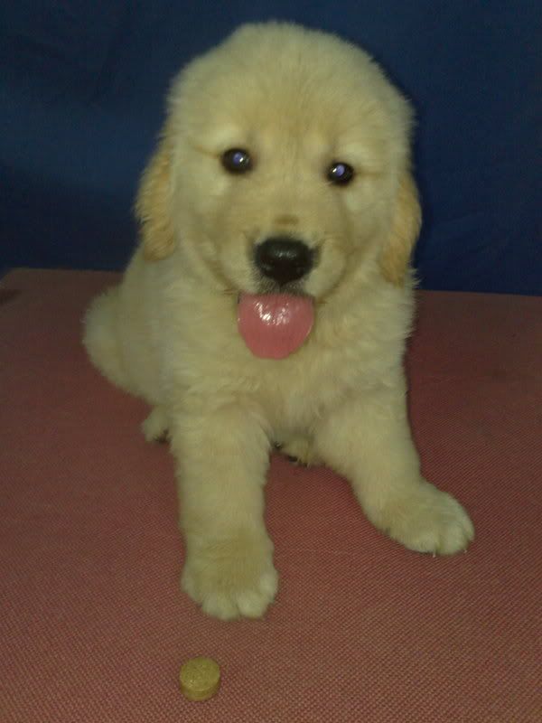 2、毛色,这个很奇怪,大家喜欢的金毛标准不一样,有些朋友喜欢金色的,还有朋友喜欢浅黄色(接近白色)--除了这两个色系外,还有黑色和纯白色。不过,顾名思义,金毛金毛,颜色自然是金色的最好--不少狗舍或者卖狗的个人,为了卖出自己不是金色的狗狗,推行另外一套理论,呵呵,等他们有了金色宝宝后,就会换一个说法了。 小金毛宝宝的颜色,和他长大了以后,基本差不多,长大了要略为深一些--可以参考耳朵边的颜色。