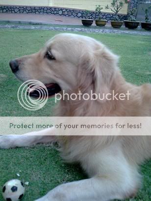 Ya.. Ruffie很喜欢玩球。丢出去,他捡回来放在我前面,要我再丢过。 不过,他不喜欢大球。这粒小球不知是他的第几粒,玩后一定要收,不然不到5分钟就坏了。