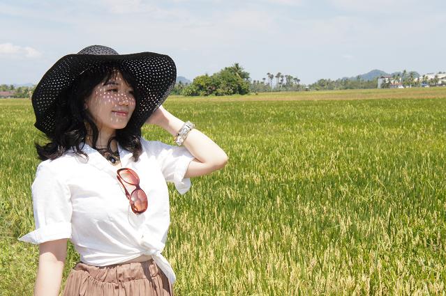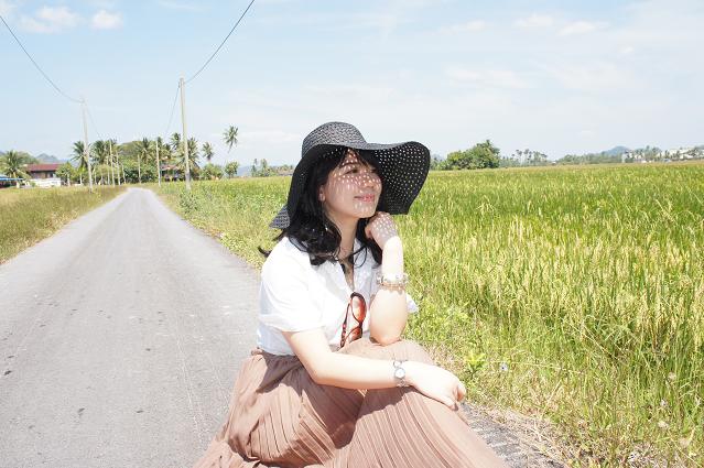 不会呢,只是腰间的皱褶会比较宽松。如果觉得自己的腰身比较短的话,或许穿盖过腰身的上衣,但不要太长,刚刚好能修饰腰型的上衣就可了。我本身的腰身也比较短,但我觉得穿长身一些的上衣要真的有较合身的比较好看,当时在家乡没有带足够的衣服,所以灵机一动用妈妈的衬衫将尾端部分束起打结,看起来较瘦一些 |