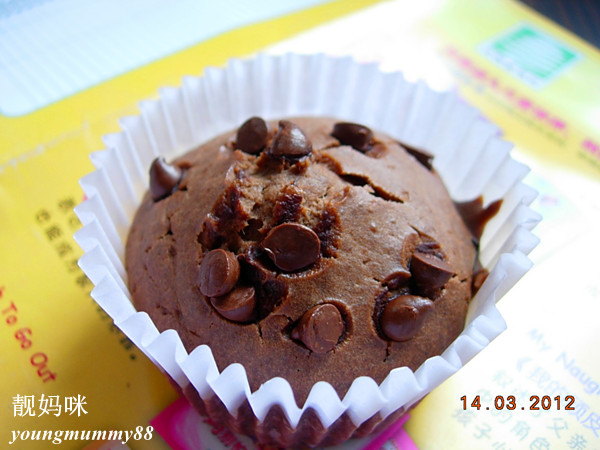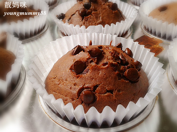 这个是做了失败的南瓜小蛋糕后隔天做的,原食谱是Oreo Muffin,可是我没有Oreo,所以做了没有Oreo的巧克力muffin,很简单的muffin呀!可是竟然失败了!