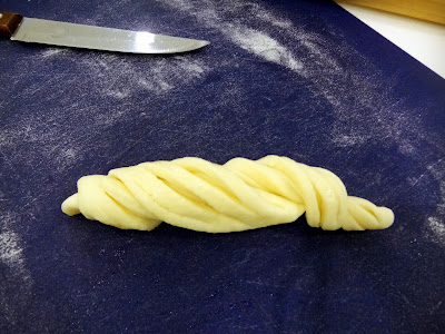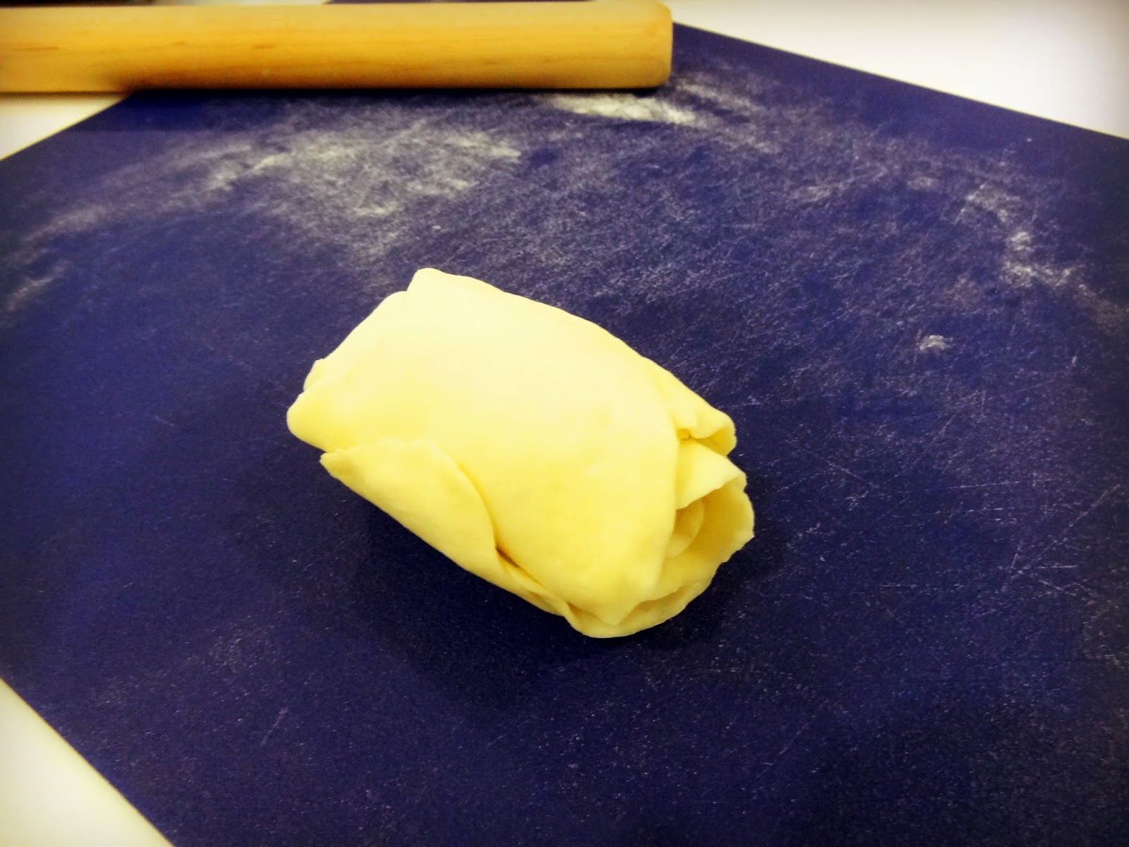 - 把面团取出,擀成0.5cm呈椭圆形的薄片,两次醒发之后的面团应该比较容易擀成薄片,而不会缩回去了。