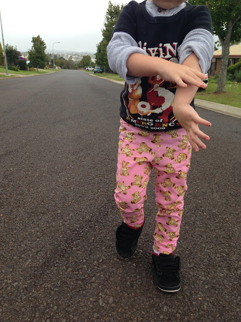 话说,好象真的是很少会看到父母给男孩子穿粉红色的裤子,粉红色的衣服可能还好。是很深色的粉红还是浅色的啊?