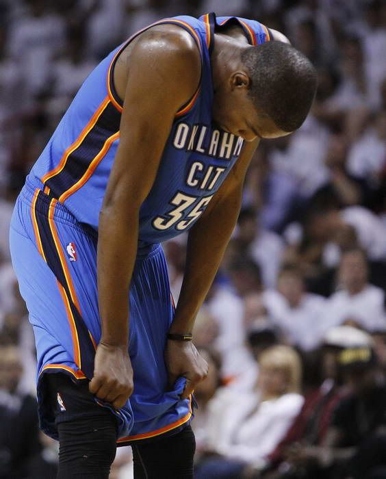 北京时间6月22日,2012年总决赛第五场在迈阿密继续举行,热火以121比106击败雷霆,从而以4比1夺取总冠军。杜兰特全场24投13中得到32分11个篮板3次助攻,也出现了7次失误。