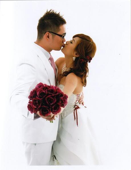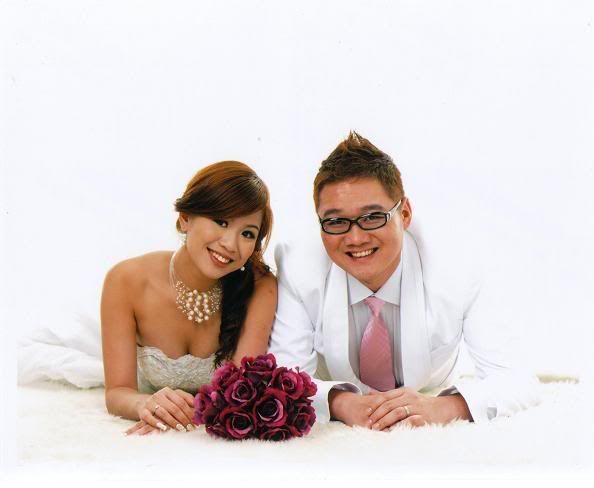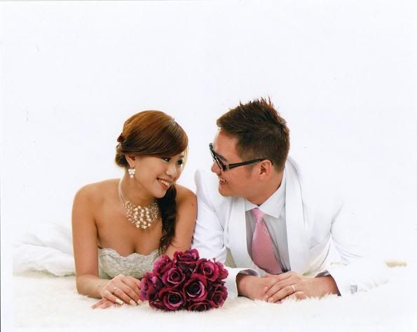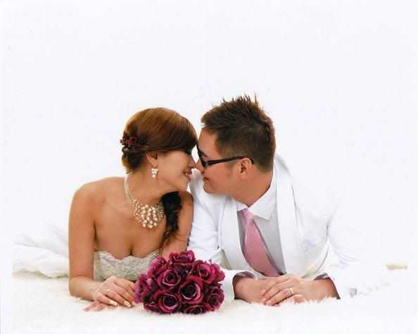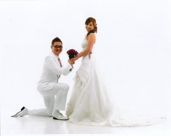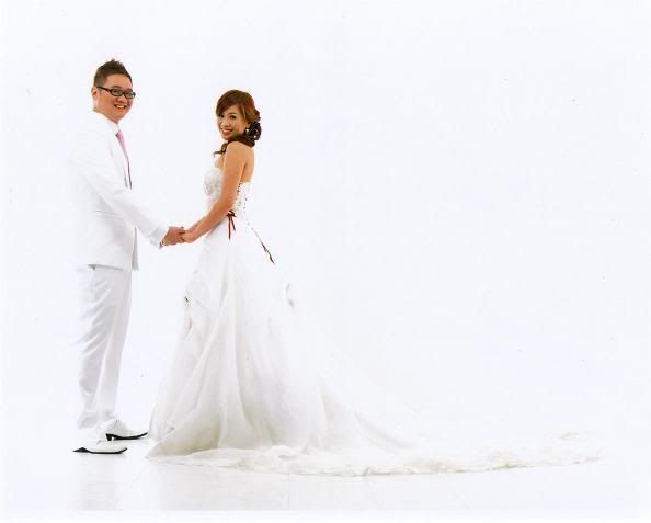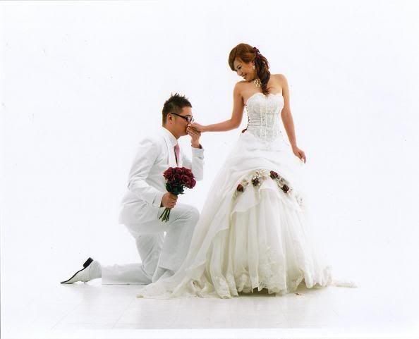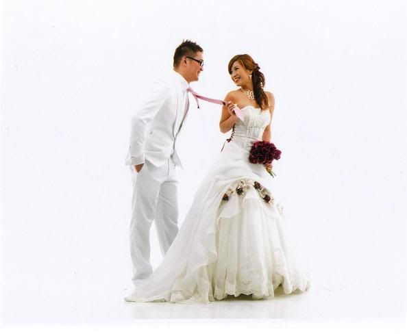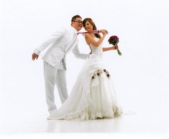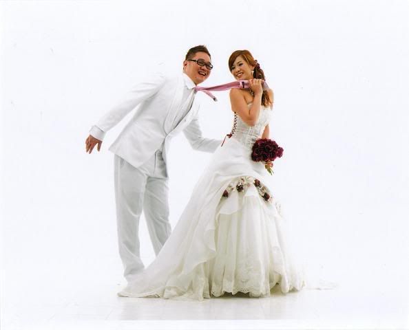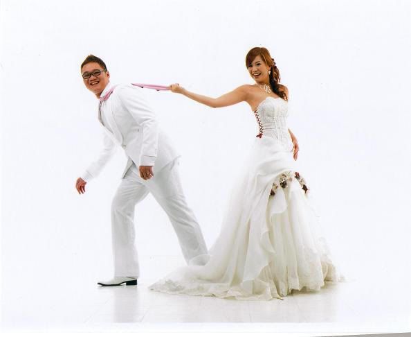 白色的背景好干净,新郎新娘活泼可爱