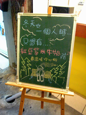 天凉来一碗烧仙草把心暖起来(看到这句心也暖起来了,不买都不行咯。不过过后我跟店里小姐说着说着就不小心把这牌弄坏了!超不好意思还拼命道歉,不过老板娘一直说没关系...)