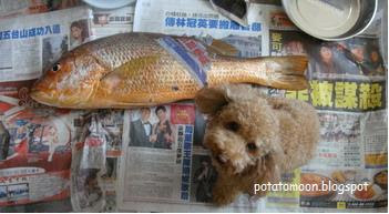 那鱼死不瞑目(眼睛睁大大),番薯看了当然害怕到哭咯 |