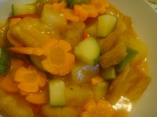 胡萝卜,黄瓜,黄梨(罐装),灯笼椒,红辣椒 - 通通加起来有一大碗那样。