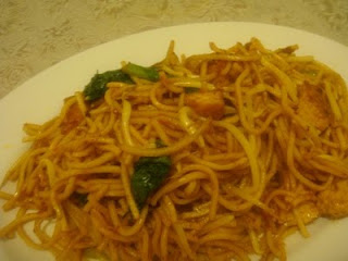 1.烧热一汤匙油,把所有材料‘9除了豆包)放入镬内兜炒一会。