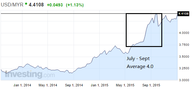 Hevea将于二月尾公布其2015财政年的第四季财政报告,而该报告是基于该公司于2015年10月至12月的业绩。如往常般的参考美元兑换马币的图表,于此前的第三季财政,美元浮动于平均价4.00,而后于10月至12月则站稳4.2以上,目前报4.41。以此推测,该公司于来临2月的业绩也将继续得益于强势美元。