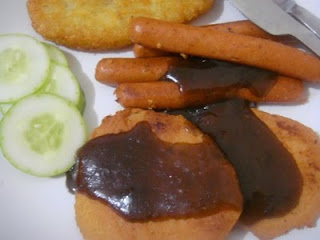 把hash brown ,素香肠 , 素鸡扒都拿去炸。
