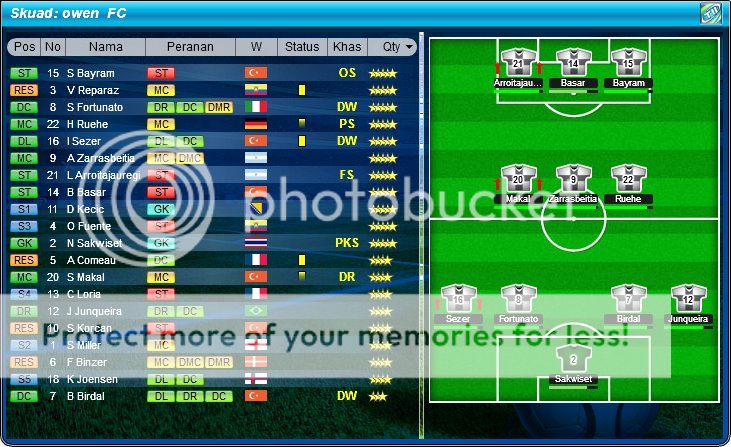 cup我也使等被收皮,今天对上满星的球队,今天还是摆了最强阵容出击,出场超过8位有特殊技能,对方只有三个!对方阵形451我方阵形433 但是这个满星的球队既然是lv9排在最后的!今天对到满星吊车位。。。。希望能赢!1-0就好! |