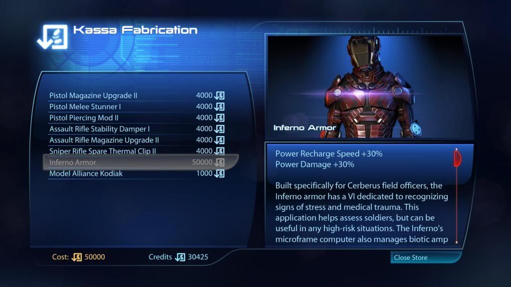Shepard的盔甲和服装菜单