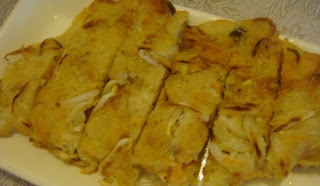 【芽菜煎饼】 1.两大汤匙面粉和50ml清水混合。 2.加入适量的胡椒粉,盐和素G粉拌匀。 3.加入芽菜和胡萝卜丝搅匀。 4.镬内加入少许的油,把面糊倒入煎炸,两面都煎炸至右少许焦黄就可以了。 |