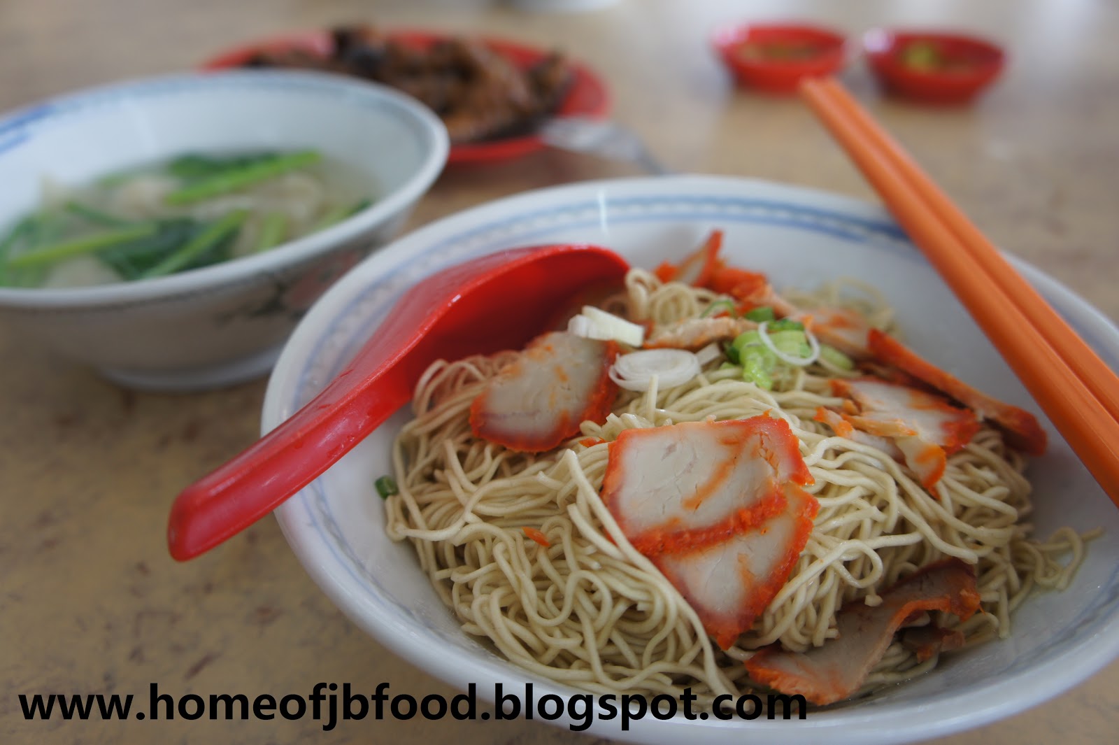 新山式的云吞面最特别之处,就是一般老字号云吞面家所用的辣椒酱。中北马一带的云吞面通常都不会加辣椒酱,主要是以腌渍青辣椒佐面而吃,而要吃出新山式云吞面独特的风味,辣味云吞面就不得不试了。晶晶云吞面的特制辣椒酱,咸辣适中,吃得过瘾。美味指数:8/10
