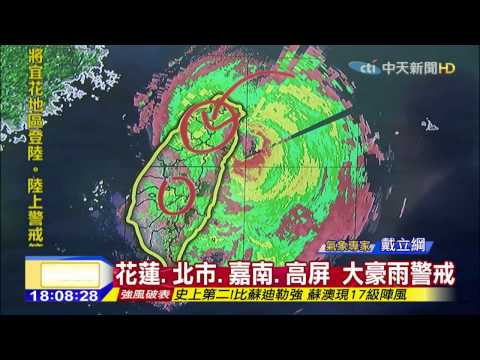 中央氣象局表示,今(16)日編號第24號颱風巨爵於早上8時增強為中度颱風,