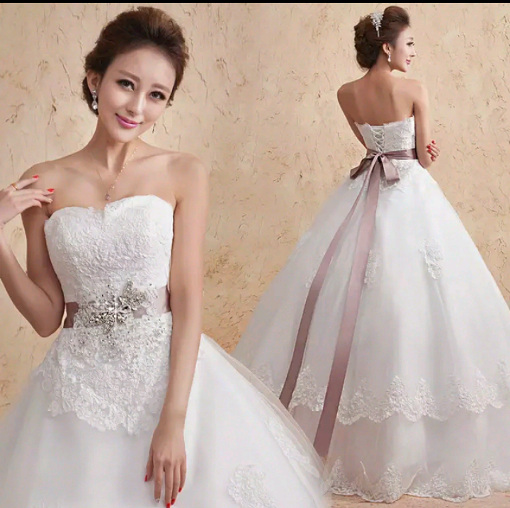 最后,看中了也很喜欢的一款,抹胸的。。。配有水钻ribbon腰带。ribbon也是很多女生的心头好吧~