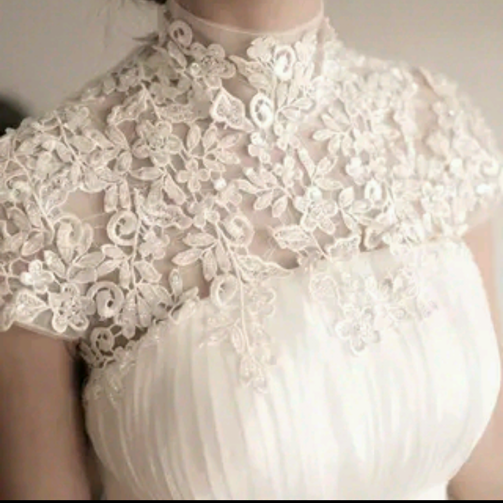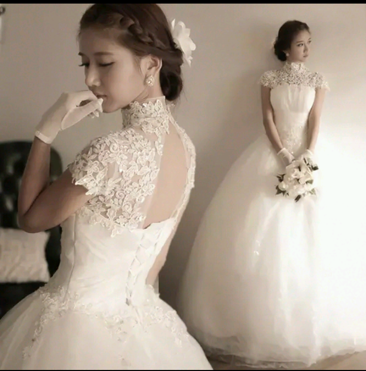 选择这2种款式的危险就是在于如果婚纱的做工不好,那在颈部的蕾丝就会出现不服贴的情况。所以,我也挣扎了满久
