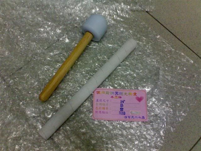 我看中那木棍厚厚白塑胶....用来磨, 比羊皮的更响亮! |