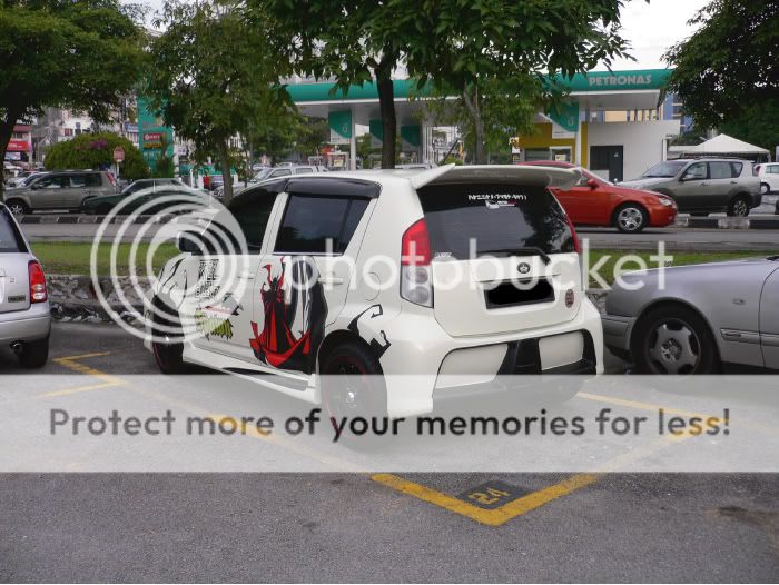 哈哈,是。。不过不会是马22仔的品味。因为市场现在是行着这种风,还有很多很多华侨都会贴类像这种,简单已经不是潮流了,有很多主题如:ultra man,monokuro boo,badtz maru,腊比小新,astro boy。。等等,我告诉你马2仔最喜欢evo fast n Furiuos 的格子款,hello kitty mira,cusco火性,而印度人喜欢老虎,老鹰,烈火,黑豹,蝎子之类。。因为本人对太多这类性的设计,air brush,painting,carbon fibre,car body sticker,car body kit,wide body kit,所以本人才清楚各方面的另类方向