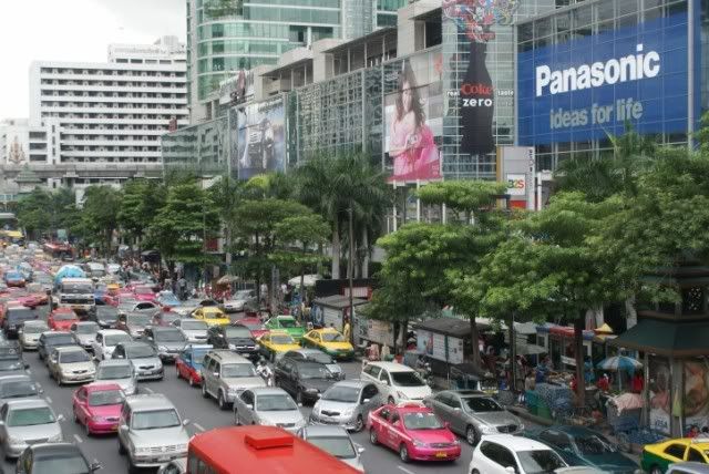 当我们正在享受着曼谷的美食并看着来往的人与计程车, 这时有个提着hello kitty 伞的男人接近我们, 他看了我们一会,像是想搭讪,最后他放弃,开始跟站在我身边的鬼佬说话, 他们就哈拉了一会, 然后鬼佬跟他的同伴走了。 这个hello kitty 男似乎意犹未尽,就转来我们这边来了,他就开口问通行的台湾的同伴,他们是不是中国来的呀,回说不是, 然后又问台湾,再说不是, 马来西亚? 也不是, 在没有得到答案的这时, 他就讪讪的走掉了, 笑死我们大家, 其实我们答的没错,因为我们是不同国家的, 嘻嘻!