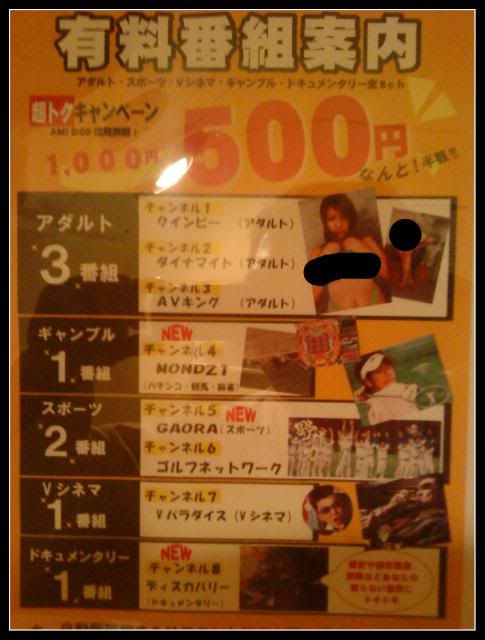 墙上还有这个menu,第一个真的是“有料“啊!但可惜需要付钱。。。 (在日文里,“有料”就是代表需要收费,“无料”代表免费)