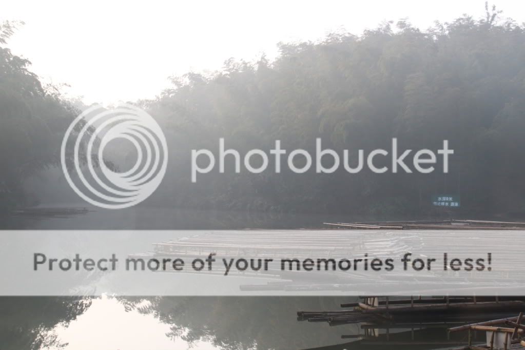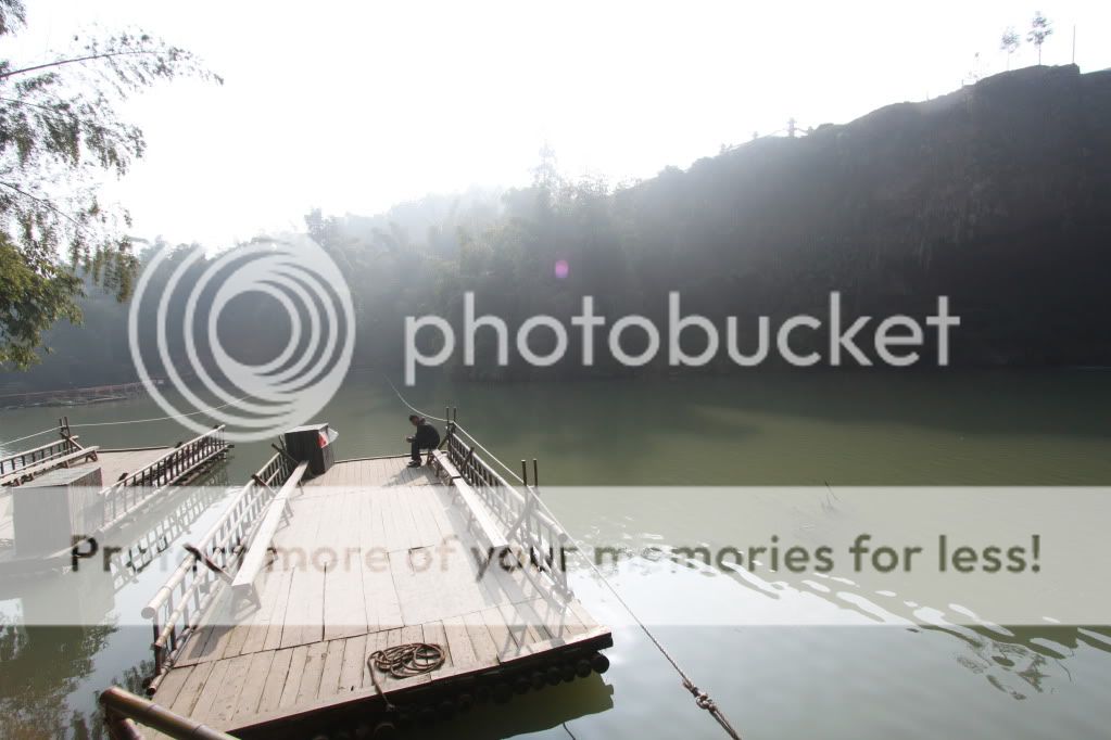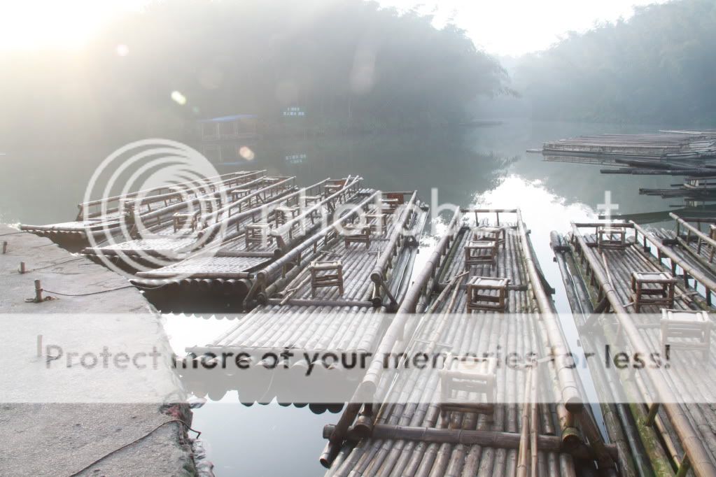 在七彩飞瀑还可以乘坐竹筏滑过这个小湖。这竹筏也是另外收费得。