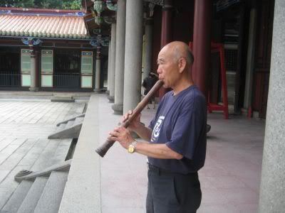 穿过了棂星门就看到大成殿了. 前方还有个老伯吹乐器, 尺八.
