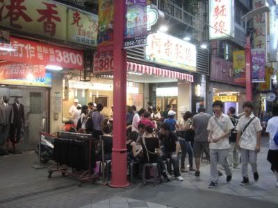 当然也少不了鼎鼎有名的阿宗面线. 看了很多网友和其他旅游网站的介绍, 说都是站在路边吃面线的. 但是到现场一看, 竟然看到很多塑胶椅子在店门口, 可以不用罚站来吃面线了. 但是个人觉得口味一般, 总觉得师大夜市的面线比较好吃.