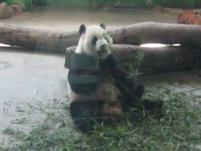 看了好久, 也拍了好多影片. 突然楼下一阵喧哗声, 原来是小学生团来参观. 吵闹声干扰了看熊猫的兴致, 就跑到礼品店买了几个熊猫布偶后, 离开了熊猫馆.