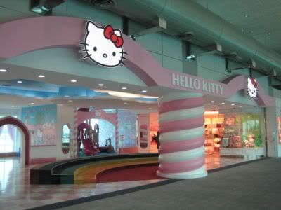 前往候机室看到 Hello Kitty 主题商店, 好可爱.
