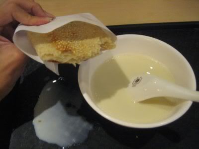 排了近1个小时的队, 总算买了1碗热豆浆和1份薄烧饼. 这烧饼有薄有厚, 说穿了就是我们当地嘛嘛挡的 roti naan. 望着厨房员工把面粉团往烤炉壁贴, 心里突然有个奇怪的想法: 老远跑来台北吃 roti naan…