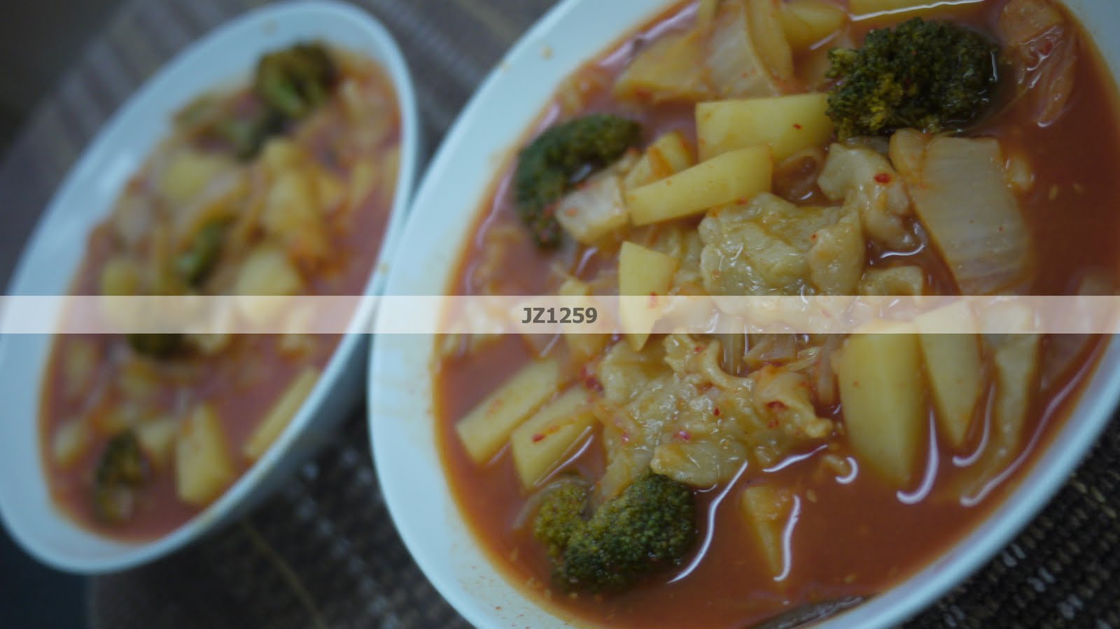 沒什麼特別, 就泡菜湯底, 加上馬鈴薯, 蔬菜, 大蔥, 手工麵...