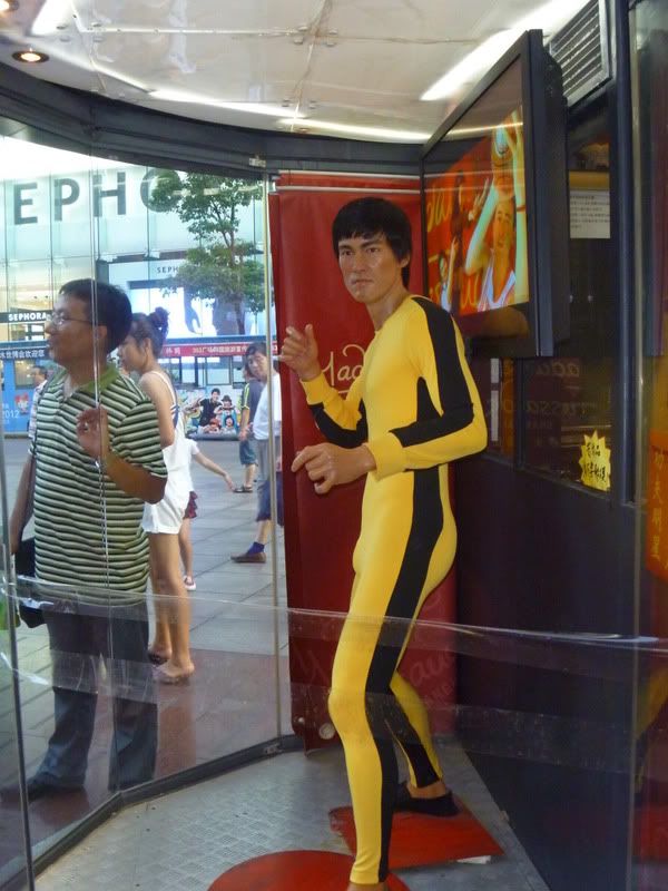 街上的功夫巨星李小龙,好像是蜡像馆的贩卖点。