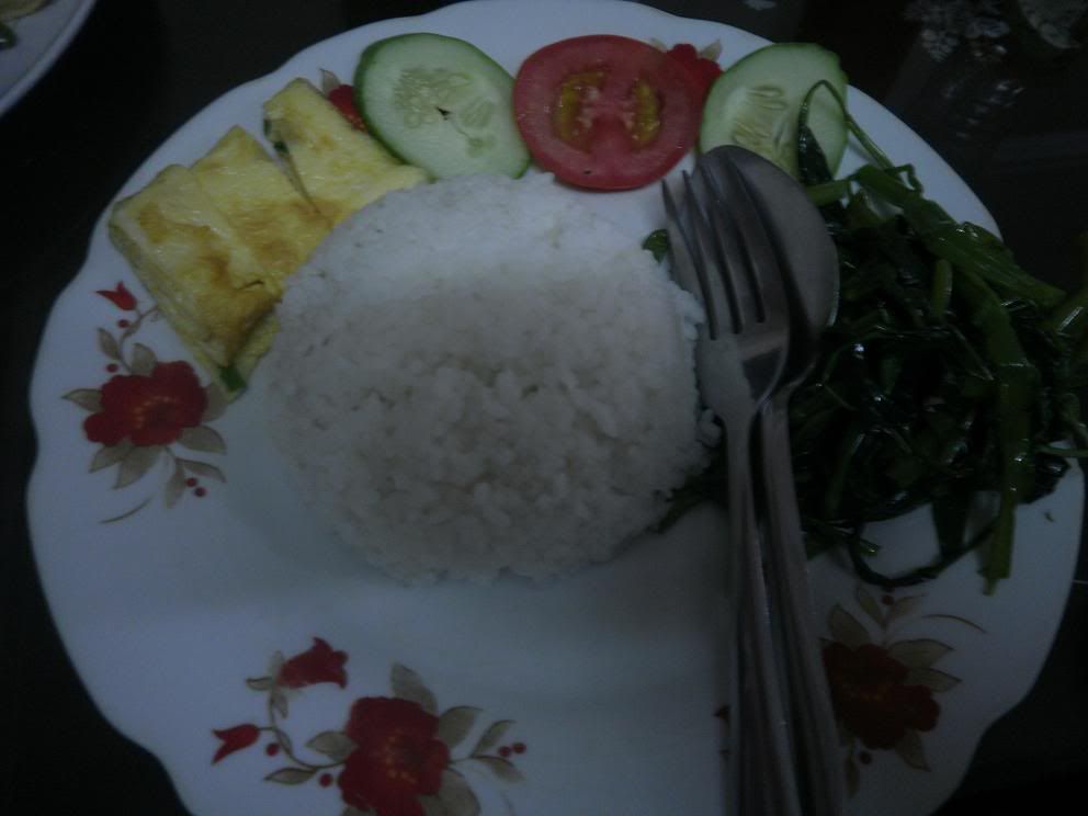 养生午餐在范伍老街小巷的guest house享用,蕹菜,煎蛋+青菜汤可能是太饿吃到粒饭不剩。