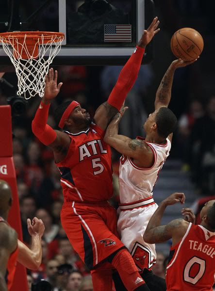 约翰逊和克劳福德接连命中三分,老鹰8-0攻击波瞬间将分差扩大为9分,公牛再次陷入被动。罗斯连得4分稳住阵脚,帕楚利亚上篮连得4分,约翰逊射中三分,客队牢牢占据主动。邓和诺阿先后投篮命中,罗斯暴扣得手,公牛打出6-0小高潮,约翰逊和克劳福德携手砍下8分,公牛大势已去难扭转败局。罗斯射中三分但为时已晚,克劳福德及时远投回敬,霍福德怒扣得手,虽然科沃尔最后17秒三分命中,但无助公牛逆转。克劳福德两罚全中,罗斯跳投得手,公牛最终95-103不敌老鹰,半决赛0-1落后。