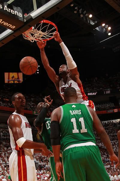 末节比赛格林封盖詹姆斯的跳投,进攻端远投得手。韦德跳投得手,琼斯外线造犯规三罚全中。朗多突破上篮,皮尔斯连投带罚砍下7分,韦德空切上篮上演2+1。,随后外线远投同样命中。皮尔斯连续与琼和韦德发生争执被吹罚两次技术犯规,随后被驱逐出场。雷阿伦连续命中两记远投将分差缩小到两位数之内,波什跳投得手,詹姆斯抢断朗多快攻助攻韦德飞身扣篮。韦德抢断朗多后造犯规两罚全中,格林突破暴扣。此后凯尔特人采取犯规战术,但热火队员罚球非常稳定,最终热火在主场以99-90轻取绿衫军,系列赛总比分以1-0暂时领先。