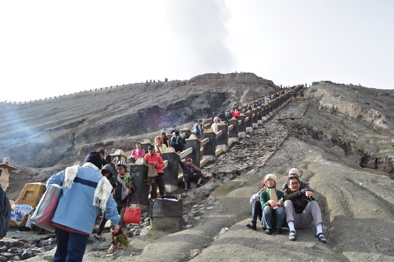 上Bromo的楼梯和扶手应该是被年头大量喷发的火山灰给毁了。我09年圣诞节去的时候,楼梯的状况OK的。