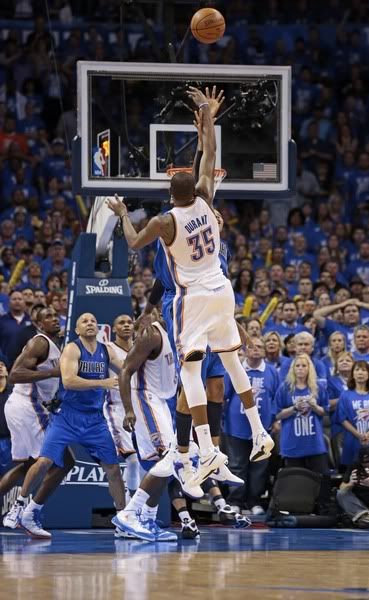 令人遗憾的是,雷霆在最后2分钟发动疯狂反扑,此前萎靡不振的杜兰特突然大爆发,连得6分,还贡献了2次漂亮的助攻,率领雷霆上演逆转。值得一提的是,杜兰特的1.5秒准绝杀有一定的运气成分,当时他投出的球砸在了篮圈上,弹了下碰到了篮板,然后又进了。小牛于是丧失了几乎到手的胜利。