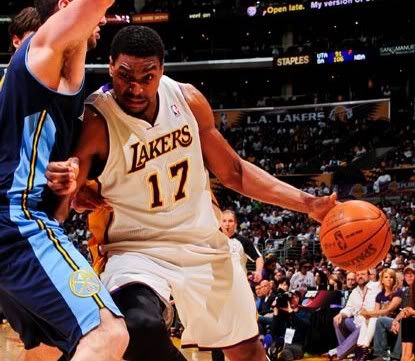 加索尔和科比各得2分,湖人再次将分差拉开。加里纳利上篮为掘金拿下2分,双方僵持了一段时间之后湖人再次发力,加索尔命中三分球,塞申斯跳投得手,湖人以64-47领先。不久后塞申斯也命中了三分球,科比则跳投命中,湖人以71-52领先达到了19分。掘金喊出暂停,随后连得8分再次追近,但是湖人在巴恩斯和拜纳姆的帮助下以75-60再次拉开。布鲁尔两罚全中,掘金以64-77进入末节比赛。拜纳姆三节就拿下了10分12个篮板球8次封盖的准三双数据。