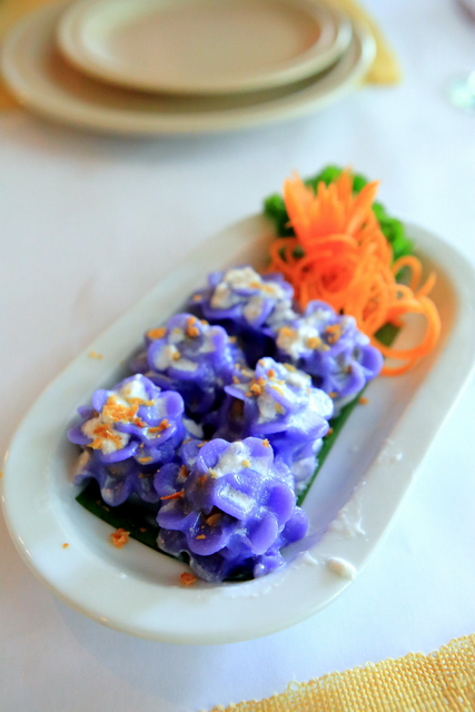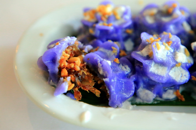 外面就像一朵非常漂亮的紫花2,里面就是花生,椰丝和麦芽糖,加上椰汁