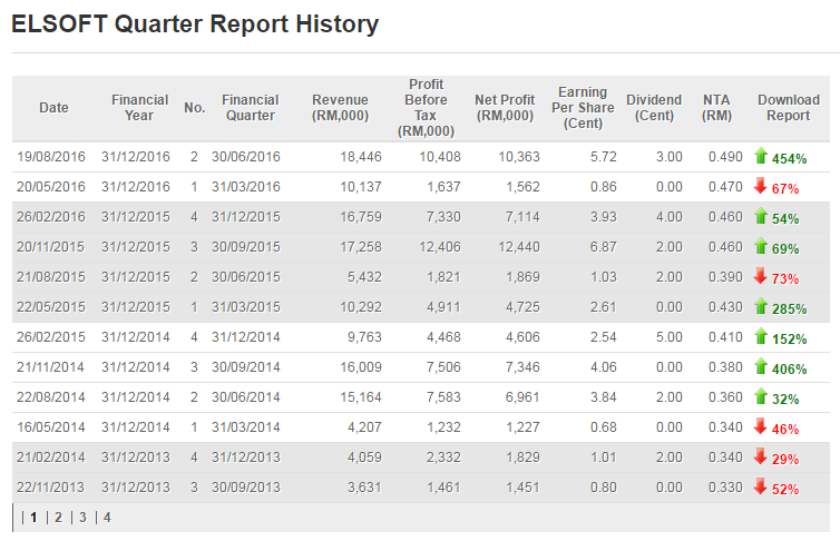 如今Elsoft的PE来到10.93,还是少于15的。而股息率提高至4.21%,因为好成绩,公司当然也随着股息政策40%而提高这次股息发放咯~ 从去年同季的2仙来到这次的3仙。