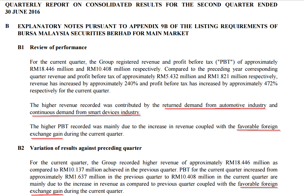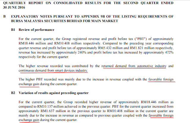 这次Q2,2016的季报,记载了近年来最好的‘突飞猛进’,和去年同季相比,营业额飙升240%,Profit before tax 也升至472%