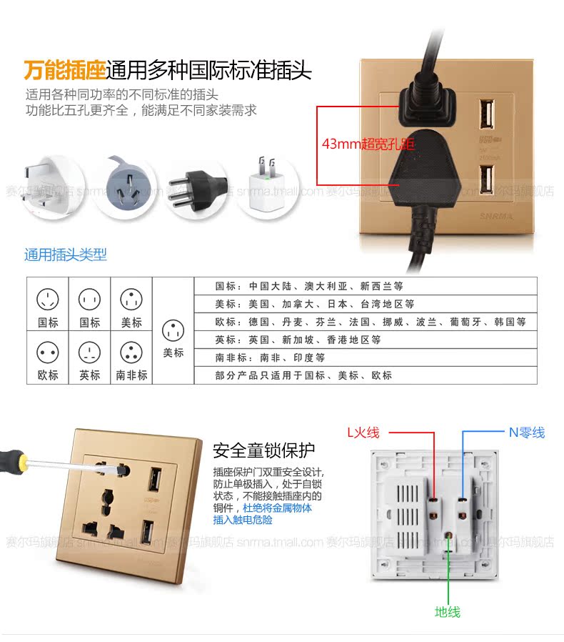 This product can support 240V/13A, and it is a universal wall socket.