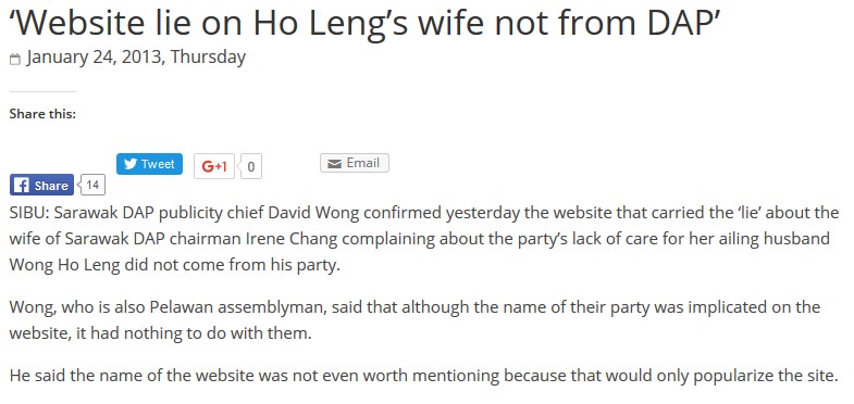 Namun setelah disahkan oleh sumber dalaman, dan dikaji semula 2 penafian akhbar oleh Irene dan David, masing-masing cuma menafikan isu DAP bantu atau tidak (kebajikan DAP terhadap WHL ketika sakit).