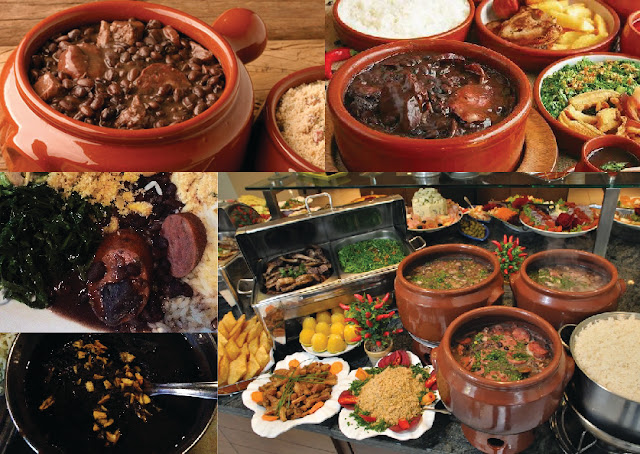 還有黑豆飯feijoada - 源自葡萄牙,因黑豆價格便宜而被廣大且貧窮的黑奴喜愛續而發揚光大, 如今已成為巴西居家主食。古時黑奴烹煮時一般會搭配主人丟棄的豬部位, 如豬腳、豬尾巴、豬耳朵等,發展到現在人們還會搭配各種香腸和煙熏乾肉, 用高級的原料讓feijoada升level,確保它們上的了檯面。