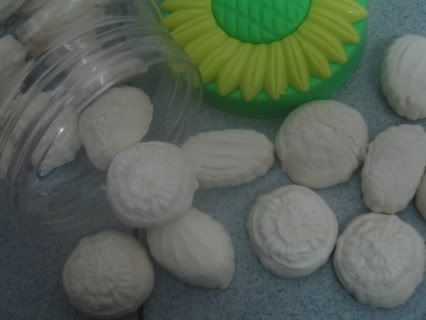 4)將面團拌成3mm薄度,隨意用切餅器,切成餅形,然后用170度C烘至干便可! |