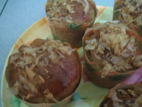 3)塗上蛋液放上柴魚片,用180度C烘25分鐘即可。 |