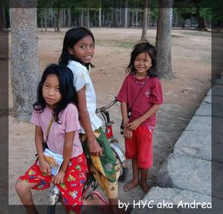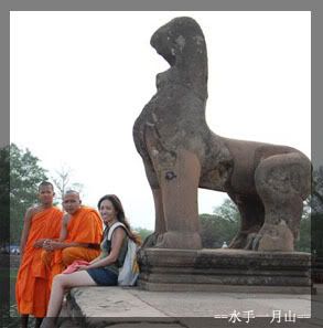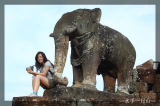 但是我们没有在吴哥寺逗留太久, 因为待会儿还要去SAMBATH家吃饭(对, 又改了, 本来是在吴哥寺外野餐的…). 而且, 在来吴哥寺途中, HY发现她的相机没电了, 一定是她之前一直一直用相机来看照片, 导致用电过量了. 在酱的突发事件下, HY显得很”显”又BOHBIAN……比较无精打采, 身为旅伴的我, 怎么可以弃她不顾一人玩乐呢? 要记得哦, 你的旅途中的心情, 行为表现绝对会影响你的旅伴的, 所以我们都要做个负责任的旅伴, OK?