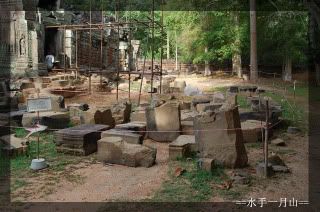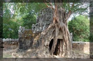 吃东西的时候, 我们就告诉SAMBATH我们打算搬到CHAO SAY GH了, 希望他可以明天早上来帮我们搬过去(虽然不是很远, 但是我们的背包满重的…), 还有我们打算把最后一天傍晚的西梅本提早到明天, 这样明天早上搬了GH后,我们就先休息了在去戏梅本, 因为真的太累了, 有点审美疲乏了. SAMBATH直接就OK了. 谈着谈着, 我们才知道, 待会儿去了圣剑寺后, 我们就没地方去了. 他问我们要不要倒回去昨天癫王台对面那边, 因为那边昨天我们没有参观, 然后午后可以在去吴哥寺看看, 因 为我们只看了早晨的吴哥寺. 想想也好, 就OK了. 再谈着谈着, 计划又变了, 最后决定, 我们今天午后去西梅本, 明天早晨搬GH, 傍晚回去吴哥寺看看, 然后和他的家人一起在吴哥寺的护城河前野餐! 棒吧? 本来只是问他说可不可以去他家看看, 吃顿住家菜, 他想了想, 就说不如在吴哥寺那里野餐吧. 这主意太好了!